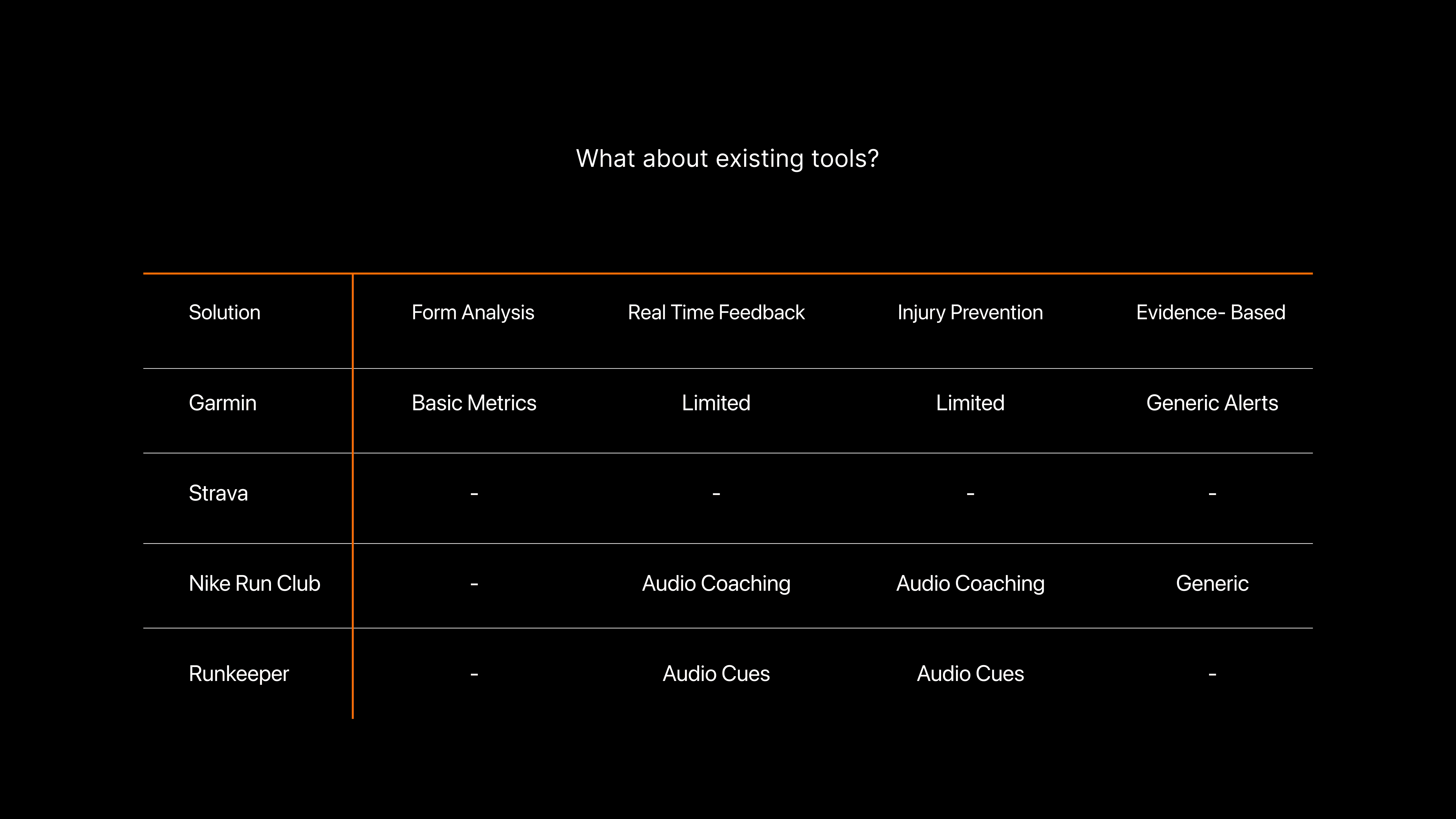 Injury prevention through real-time coaching Boosts motivation + confidence with measurable progress Enables safer exploration of new terrains (trail, urban, long-distance)