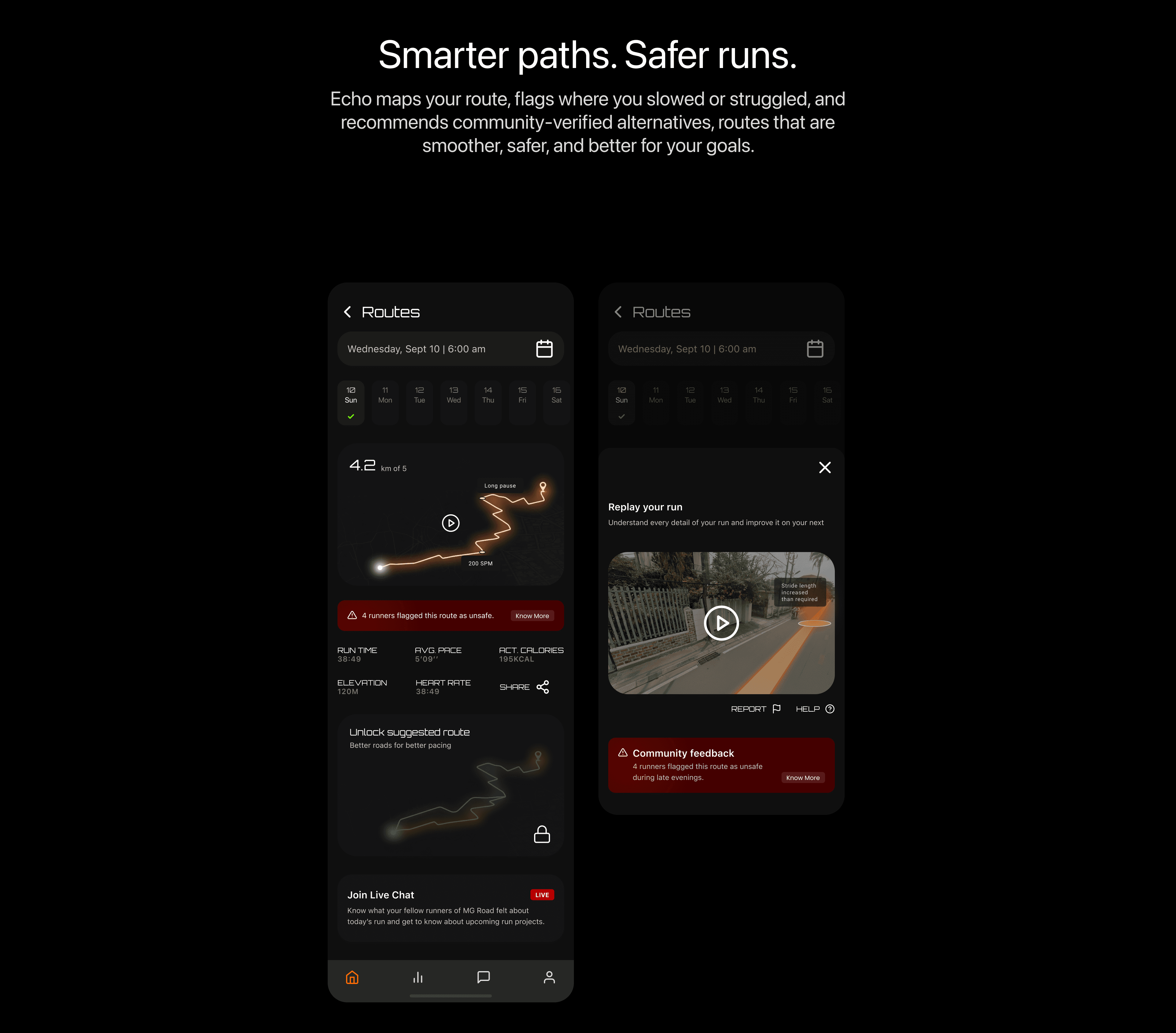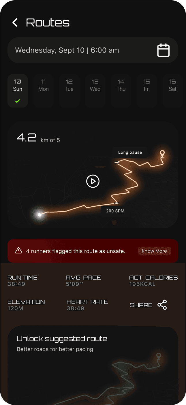 Shared running insights → motivates group runs Safer running routes collectively mapped Builds stronger bonds through shared progress and encouragement